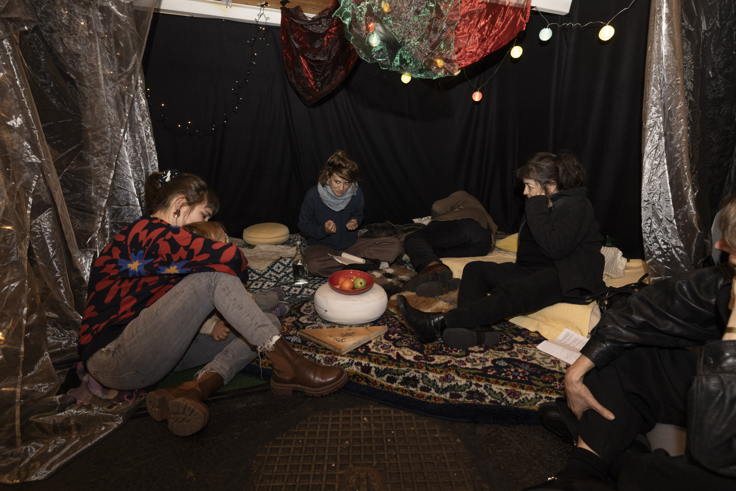 Mit vielen Künstler·innen, dem La Grenouille-Team und unserem Club Ado. Mehrmals am Tag gibt es ausserdem zwei kurze Performances, die sich auch mit dem Thema beschäftigen.